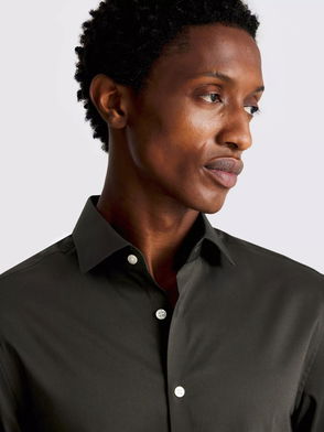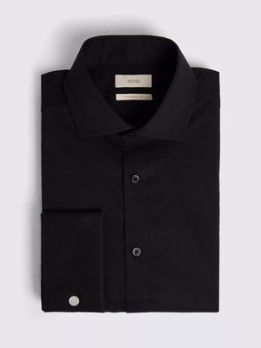 Cotton Blend Tailored Fit Double Cuffed Shirt, Black