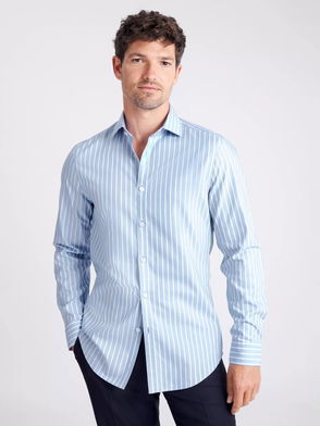 Cotton Tailored Fit Non-Iron Stripe Shirt, Blue