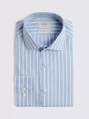 Cotton Tailored Fit Stripe Shirt, Light Blue
