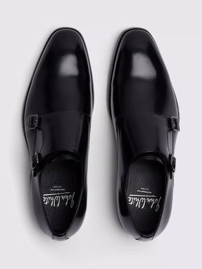 John White Monkton Leather Monk Shoes, Black