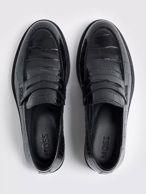 Crocodile Effect Leather Loafers, Black