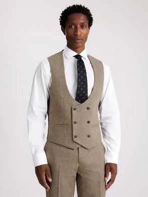 Slim Fit Wool Blend Double-Breasted Horseshoe Waistcoat, Brown