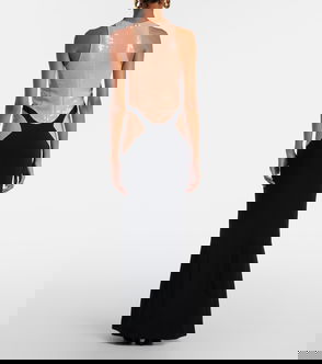 Ruched Open-back Mesh Gown