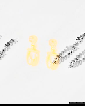 Krini Brown Stone Detail Gold Tone Statement Earrings