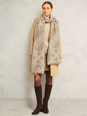 Delaney Insignia Pure Wool Scarf, Camel/Cream