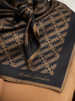 Bria Insignia Pure Silk Scarf, Navy/Camel