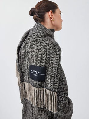 VIVERE Sally Wool Blend Herringbone Check Belted Overcoat