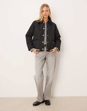 Josie Open Collar Boxy Jacket, Navy/Multi