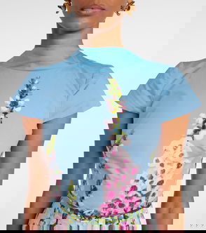 Short Sleeve Jacquard Midi Dress In Amaya Blossom Multi