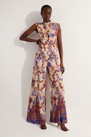 Premium Viscose Linen Paisley Border Print Woven Jumpsuit