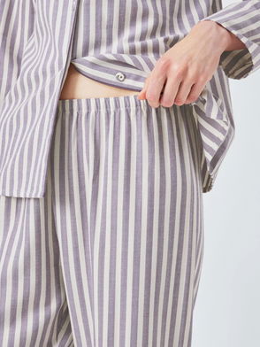 Herringbone Stripe Brushed Cotton Long Pyjama Set, Ivory/Purple Sage