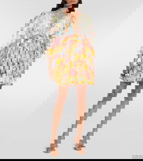 Floral-appliqué Gathered Silk Crêpe Minidress