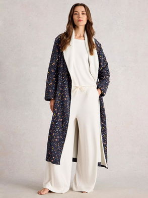 Sprig Quilted Dressing Gown, Khaki/Cream