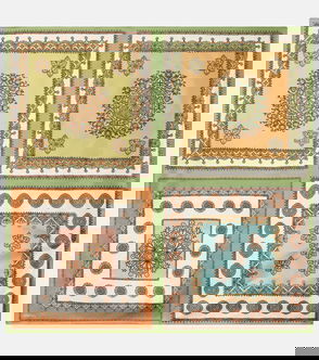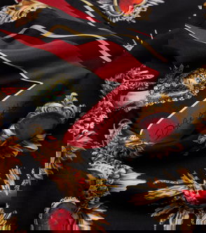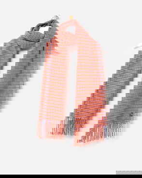 Pink & Blue Checked Cherry Motif Midweight Tassel Scarf