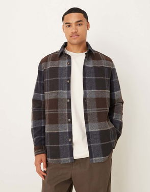 Chapter Tailored Check Overshirt In Midnight Oak Tartan