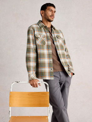 Hanley Cotton Regular Fit Check Shirt, Olive Multi