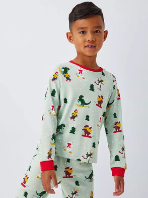 Kids' Ski Scene Christmas Pyjamas, Pack Of 2, Red Multi