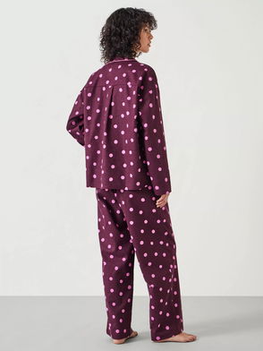 Amita Polka Dot Button Through Long Pyjama Set, Purple/Pink