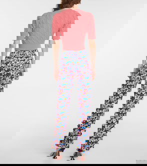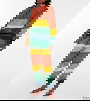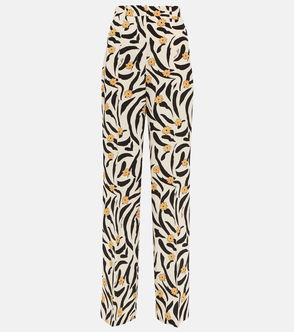 Striped Mousseline-paneled Satin Straight-leg Pants