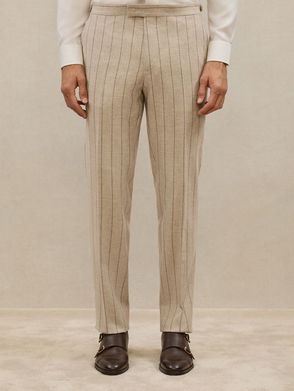 Atelier Wool Pinstripe Suit Trousers Slim-Fit In Oatmeal Brown