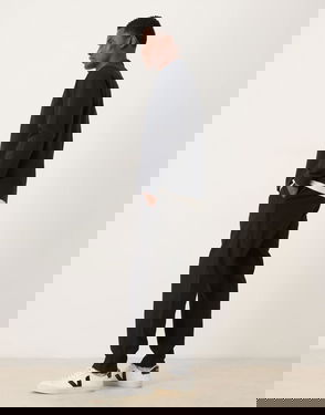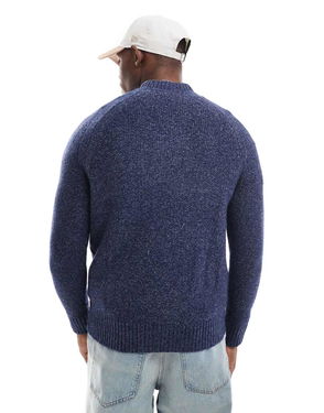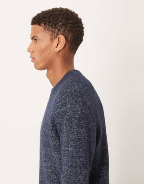 Wool Mix Relaxed Fit Ribbed Jumper In Navy