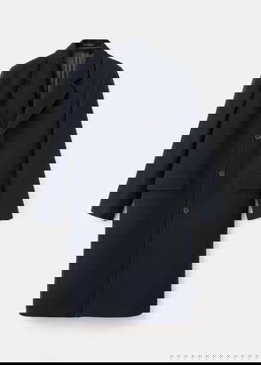 Wool-Blend Internal-Gilet Overcoat In Navy