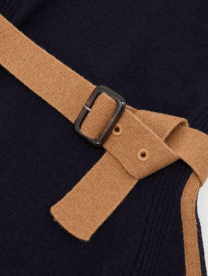 Wool-Blend Belted Knitted Dress With Cashmere In Navy