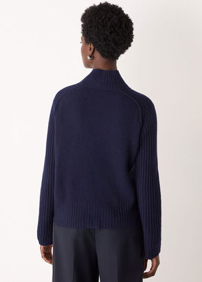 Navy Wool Funnel Neck Knit