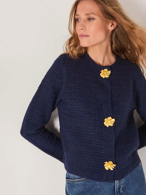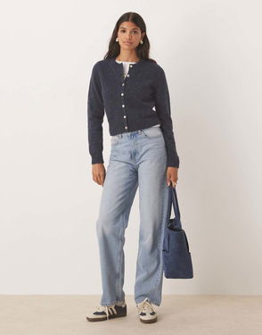 Abercrombie & Fitch Micro Cardigan With Gold Buttons In Navy