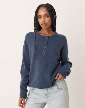 Abercrombie & Fitch Long Sleeve Henley Jumper In Navy