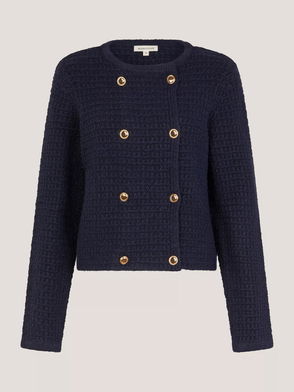 Skye Double-Breasted Waffle Knit Cardigan, Navy