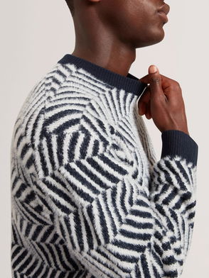 Navy Blanket Stitch Wool Mix Knit