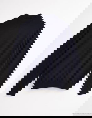 Wool Mock Neck Jumper, Navy