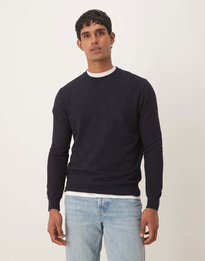 Tipped Crew Neck Jumper In Navy
