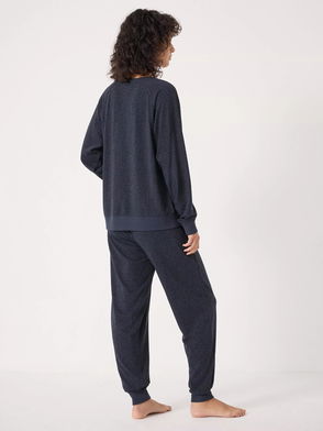 Snowflake Bottom Jersey Long Pyjama Set, Navy