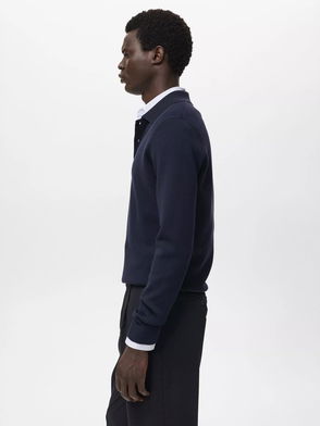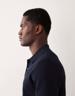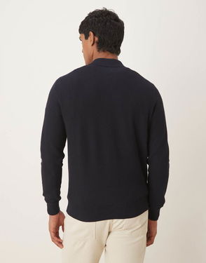 Cotton Mix Long Sleeve Knitted Polo Top In Navy