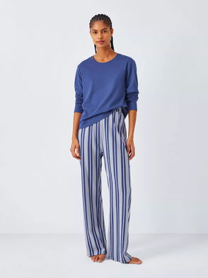 Poppy Floral Brushed Cotton Long Pyjama Set, Navy
