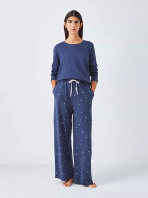 Snowflake Bottom Jersey Long Pyjama Set, Navy