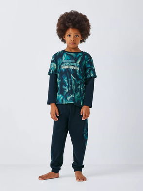 Kids' Cotton Dinosaur Long Sleeved Pyjama Set, Navy