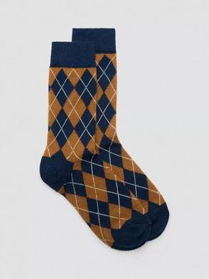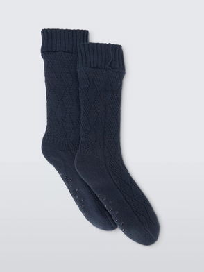 Fairisle Fleur De Lis Wool Blend With Cashmere Crew Socks, Navy