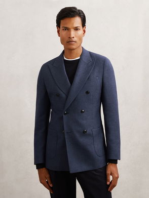 Wool-Blend Double-Breasted Blazer Slim-Fit In Navy