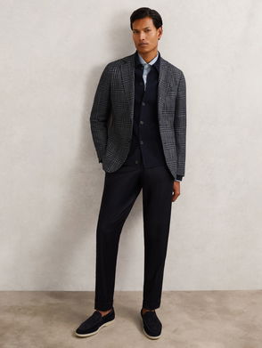 Wool-Blend Check Single-Breasted Blazer Tailored-Fit In Navy