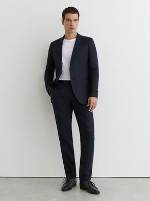 Tailored Fit Single-Breasted Textured Suit Blazer With Wool In Navy