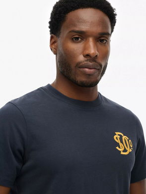 Crew Neck Logo Print Cotton T-Shirt, Dark Navy