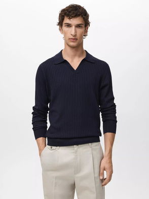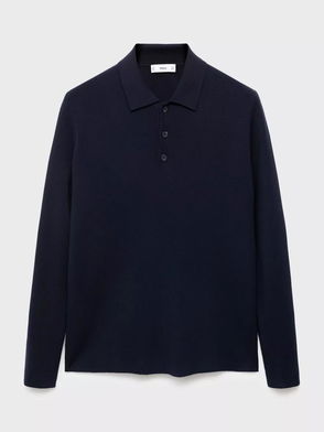 Waketown Cotton Tailored Fit Long Sleeve Polo Shirt, Dark Navy