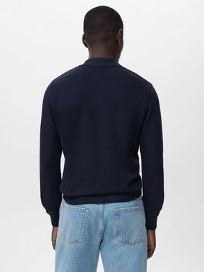 Cotton Mix Long Sleeve Knitted Polo Top In Navy
