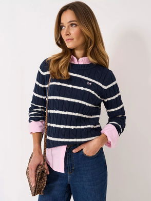 Stripe Cable Knit Jumper, Navy Blue