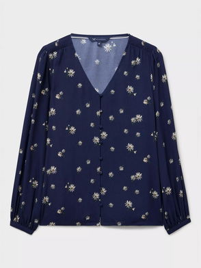 Lola Floral Tie Back Top, Navy Blue