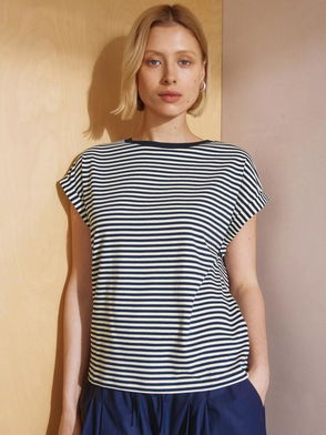Weekend MaxMara Gilbert Short Sleeve Satin & Jersey T-Shirt, Navy