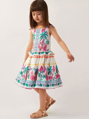 Kids' Alicia Short Sleeved Satin Bodice Dress, Ivory